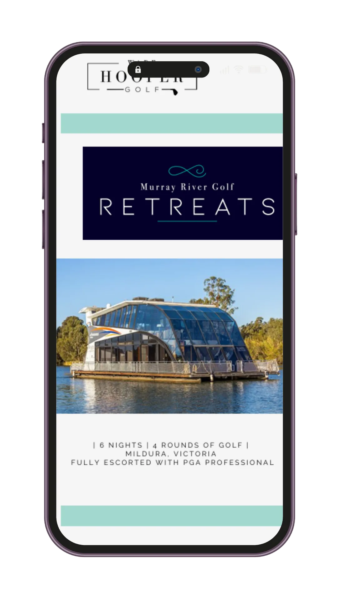 The ONLY golfing tour in Australia where you arrive on-course via your very own Luxury houseboat accommodation.
