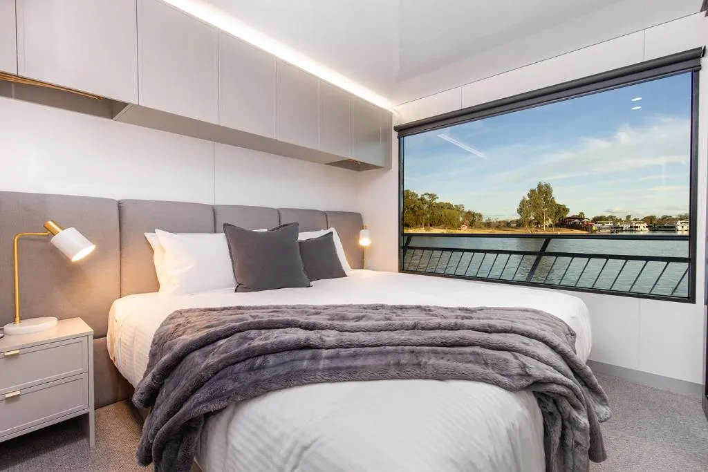 Wake in 5-star comfort aboard your exclusive luxury houseboat. Carry your morning coffee to the rooftop sundeck and watch the Murray River come alive—pelicans gliding past, mist rising off the water, sunrise painting the Victorian sky.